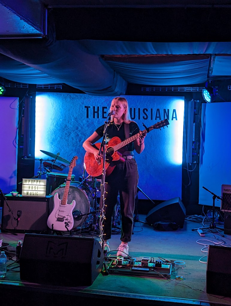 First to take the stage is Bath based support act Poppy Rose who performs a beautifully brittle, acoustic set of boldly fragile numbers, bringing the venue to a hush, telling candid tales between tracks of being a star-crossed lover in Berlin (‘Midnight at Boddinstrasse’) and fighting against body dysmorphia (‘I Love My Body’). She ends her set with a surprisingly felicitous version of Jay-Z and Beyonce’s ‘Crazy In Love’.