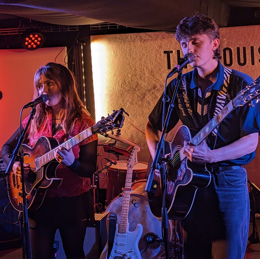 Vona Vella lead their set with their album’s first single ‘Thought We Were Falling In Love’, showing off the eclectic capabilities of their augmented line-up, with swooning guitars and the principle duo sharing ethereal vocals in front of an attentive crowd including Izzy’s brother, several vocal friends of guitarist Dexter and enthusiastic supporters from across the Welsh border. The choice of songs tonight cascade mainly through the album’s highlights. A divine version of ‘Divine’, starting with a sweet female led solo intro from Davies in the guise of surly 1960s chanteuse, sees the rest of the group kicking in with an easy jazz waltz and after a full gusted performance of ‘Intertwined’ it’s up to Dan to bashfully take the mic and wish Claud a happy 26th birthday to fill a moment as Izzy prepares her second guitar.